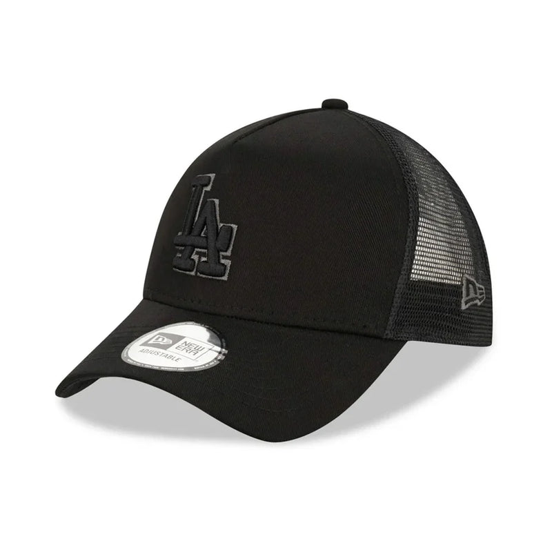 Get that all-black LA style and back the Dodgers to take the World Series by wearing an official New Era LA Dodgers Black on Black 9FORTY A-Frame Trucker cap. Rendered in black, the A-frame crown features mid and rear mesh panels for a cool wear in warm weather and boasts a curved visor that shades when the sun shines. The Dodgers logo is applied front and centre, with our signature New Era flag embroidered to the left. A snap closure ensures you control the fit.